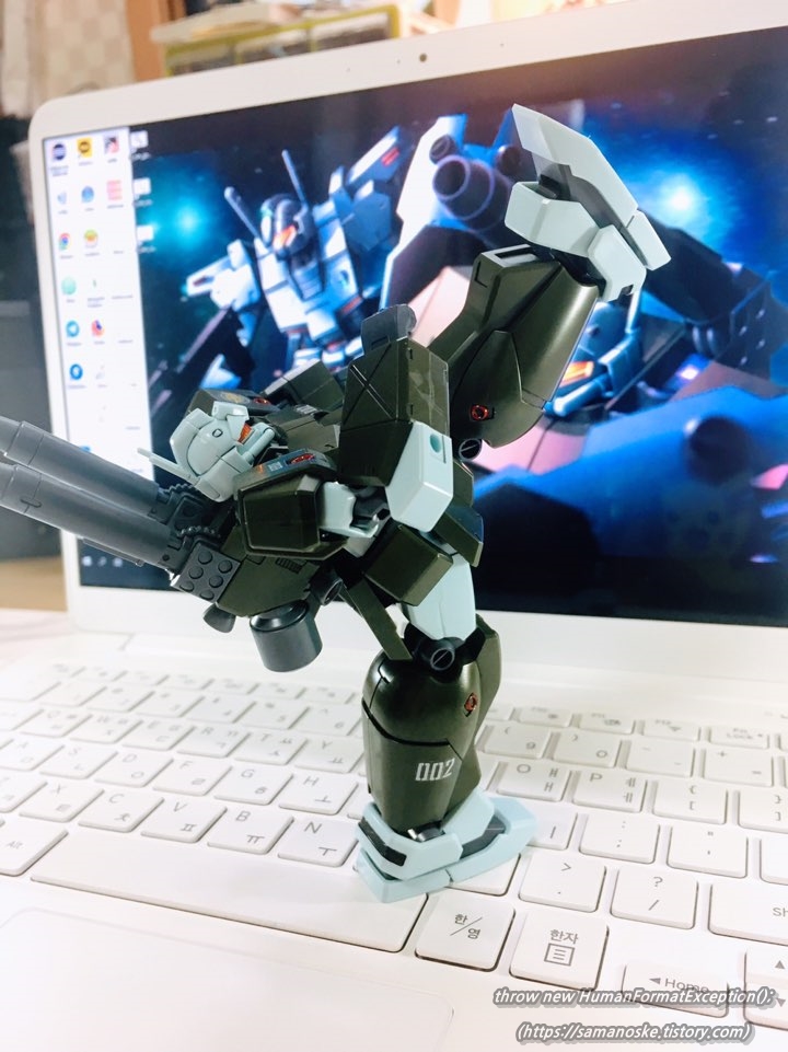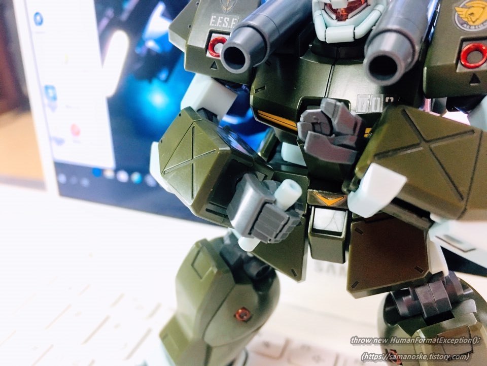 양손에 편 손 파츠도 있길래 원조 포격 지원기인 건캐논의 엎드려쏴!! 자세 따라해봄..