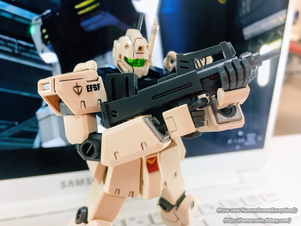 킷 베이스가 HGUC 파워드짐 킷과 거의 동일한 수준이라 가동폭이 거의 비슷하다.